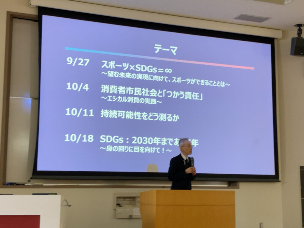 スポーツには社会をよりよく変える可能性が無限に広がっています。地域のスポーツ活動がどのようにウェルビーイングを支えるのか、スポーツが未来の社会をどうデザインしSDGs全体に貢献していけるのか、本講演で秘めた可能性を受講生と共に探りました。