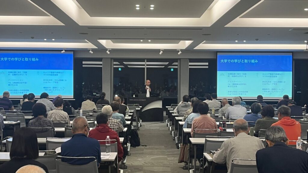 また、ゼミ生との日常的なコミュニケーションの取り方についても触れられ、学生とのやり取りの中で生まれるユーモアや気づきを交えながら、会場には時折笑いが起こる和やかな雰囲気が広がりました。