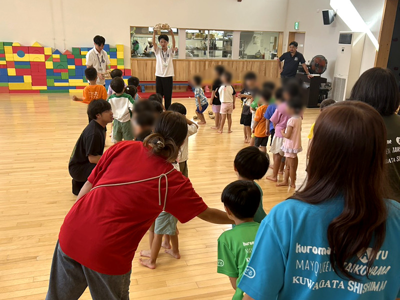 【保育園での運動遊び教室の実施】 オンラインでの事前打ち合わせ後、2025年9月3日(水)〜6日(土)にかけて厚沢部町を訪問し、厚沢部町の保育園にて運動遊び教室を実施しました。学生が自作した遊具やボールを使用し、子どもたちが楽しく体を動かせるプログラムを提供。提供した遊具やおもちゃは、その後も運動会などの行事で継続的に使用されています。 保育園での運動指導は予定時間を超過してしまい、指導内容だけでなく全体の進行管理を意識する必要があると感じました。 【メークインを使った商品の開発】 厚沢部町の特産品「メークイン」に触れるため、農業体験も実施。地域の産業や暮らしを実際に体感し、町の魅力を深く理解する機会となりました。 2025年11月16日(日)には道の駅マチテラス日進で開催されたBURGER FESにて、メークインを活用したドーナツの試食会を開催。味・見た目・価格に関するアンケートを50名以上から回収しました。アンケート結果から、味の種類の少なさや冷めると美味しさが落ちる点など課題が明確となり、それらを踏まえて改良を進め、商品化を目指しています。 【厚沢部町の魅力を発信するPRブースの設置】 2026年3月に開催されるシーホース三河のホームゲームにおいてPRブースを設置し、より多くの人に関心を持ってもらえるよう厚沢部町の魅力を発信する活動を行う予定です。