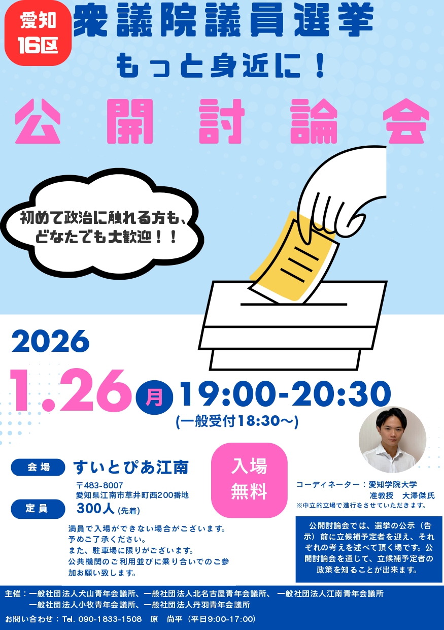 「【愛知16区】衆議院選挙 公開討論会」開催(1/26)